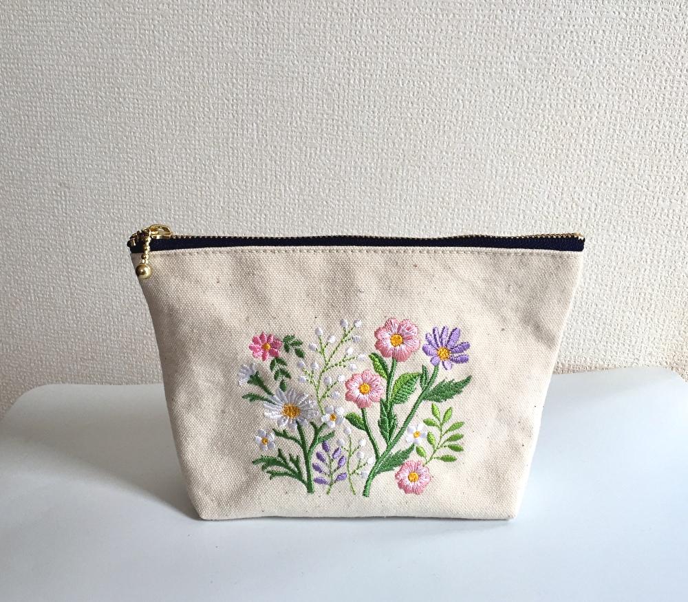 花の刺繍ポーチ(ピンク)