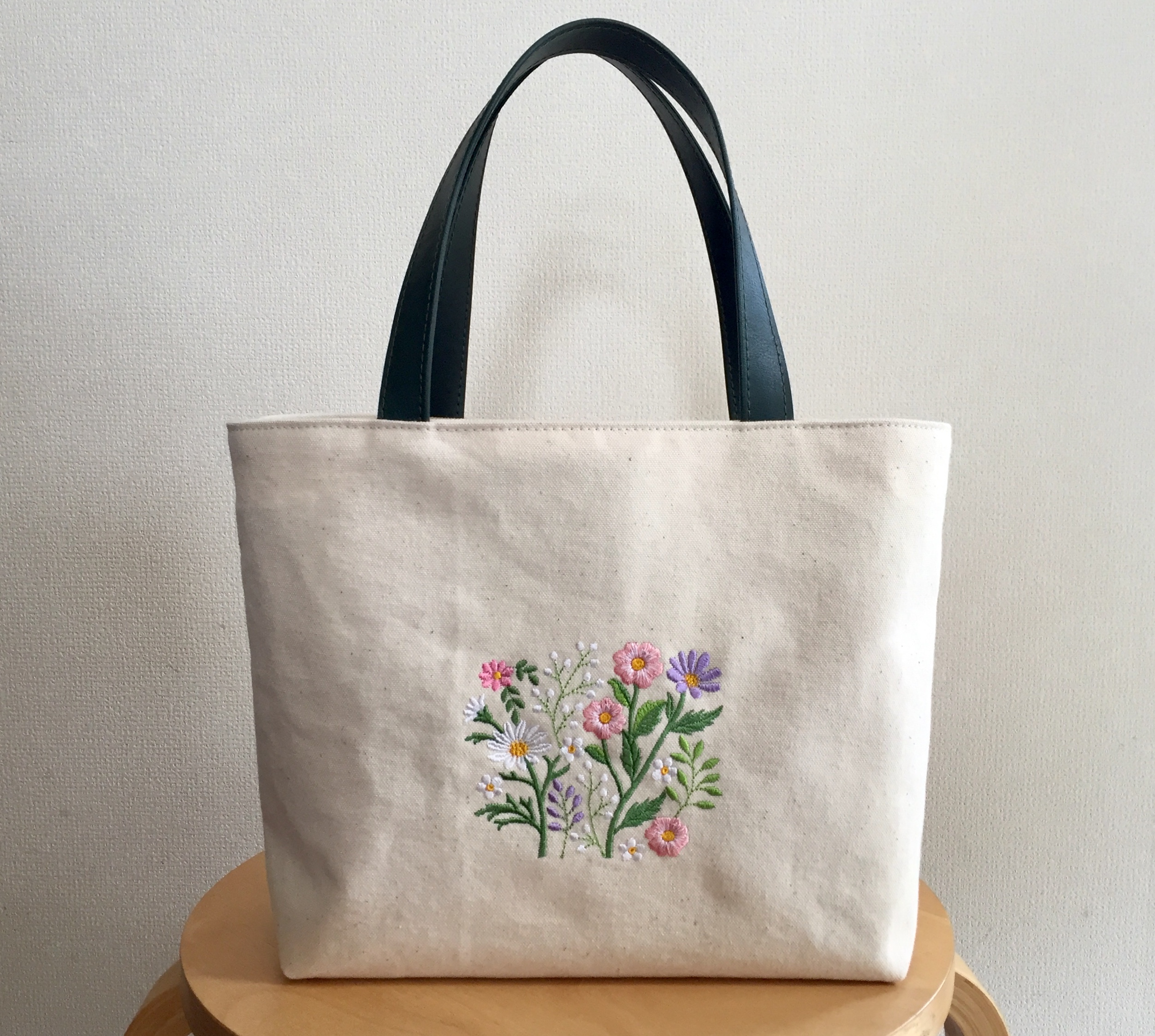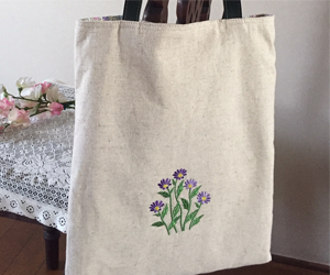 花の刺繍トートバッグ