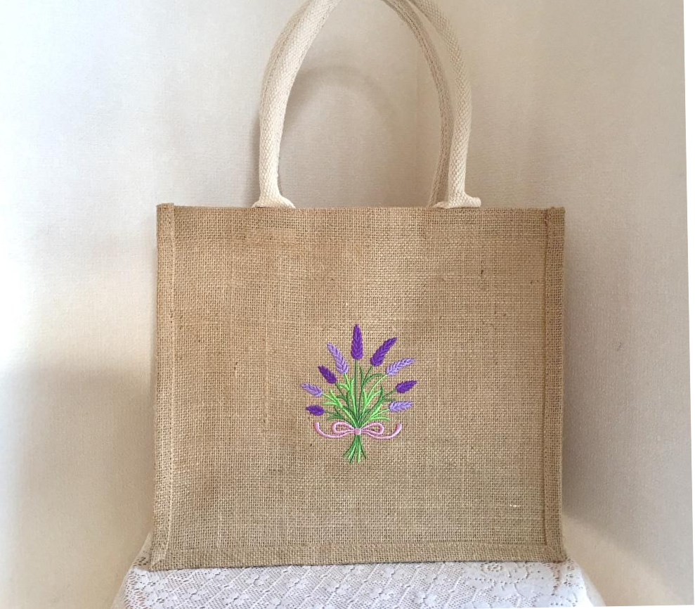 ラベンダー刺繍のジュートバッグ