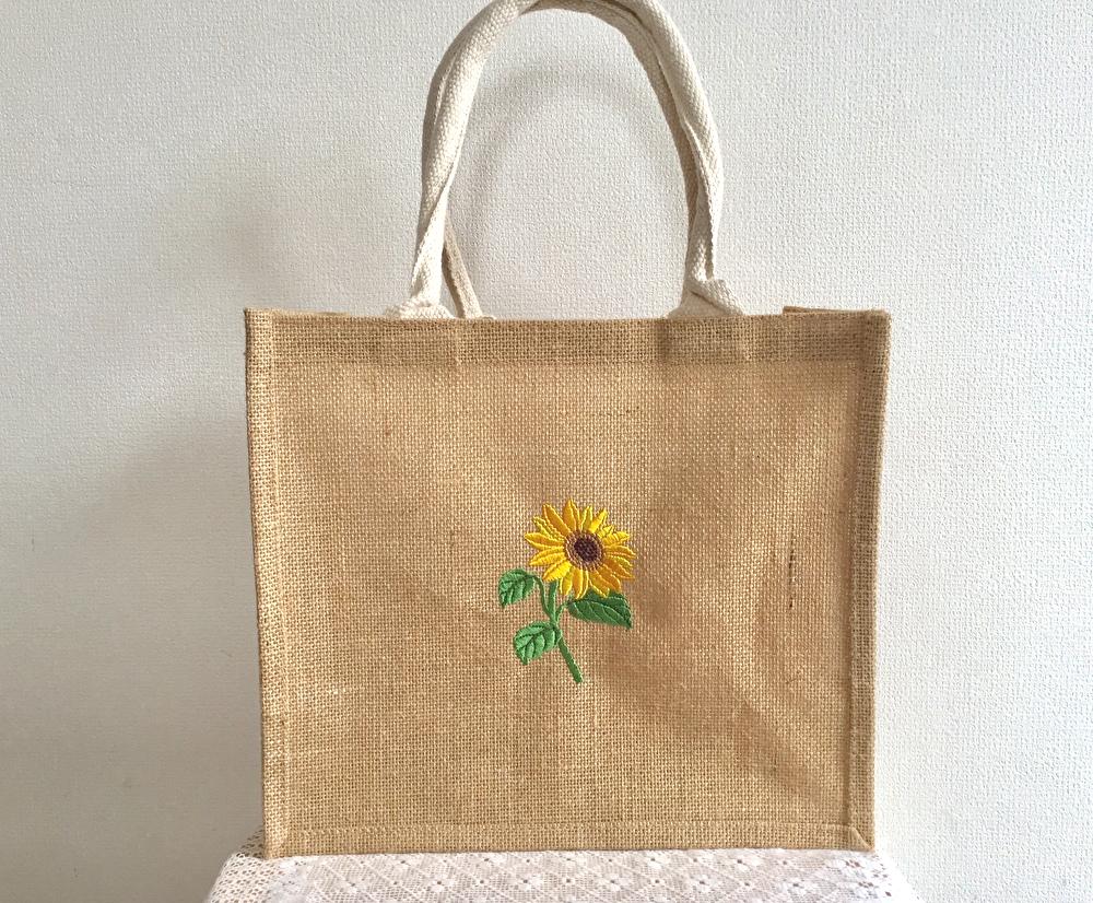 ひまわり刺繍のジュートバッグ