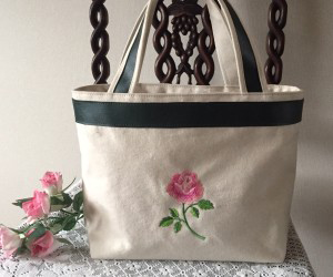 バラの刺繍トートバッグ(ピンク)