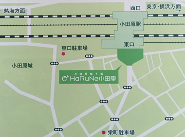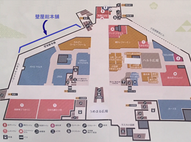 小田原駅地下街にあるショッピングモールHaRuNeの「壁屋総本舗」の案内図です。